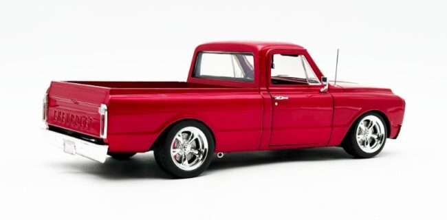 A couple of entries from ACME this week. The first is the 1:18 metal and opening 1967 Chevrolet C-10 Custom – Showtime/Red and the 1:18 metal and opening Southern Speed & Marine 1965 Ford Mustang A/FX – Colt 45. The pickup will arrive in Q2 2026, while the Ford later this month. And AUTOart, that’s how you make a functioning rear tailgate!