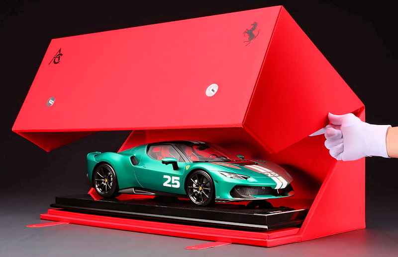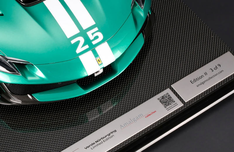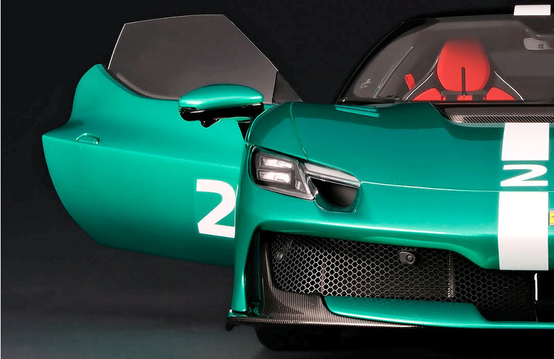Amalgam unveiled the production example of the limited edition of eight pieces, 1:8 scale Ferrari 296 Speciale in Verde Nürburgringexterior. The team plans on a Blue Corse exterior for the Ferrari 296 Speciale A. If you have $20K to spare, these can be ordered now!