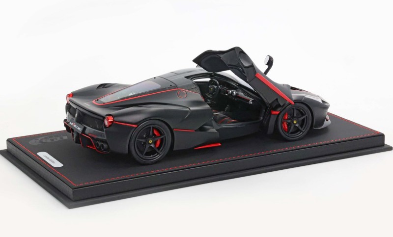 BBR is set to release the 1:18 metal and opening Ferrari LaFerrari in Matt Black with Red stripes. Two versions will be made available, hard carbon base and leather base. Each limited to 200/100 units respectively.
