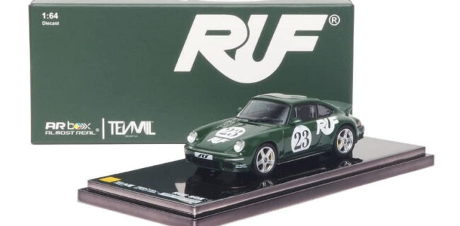 Almost Real with Tenmil will offer this limited and exclusive 1:64 scale RUF SCR 2018 Duck Wing #23 in Irish Green. Each will ship with a collection card and be numbered. Delivery is noted as December 2025.