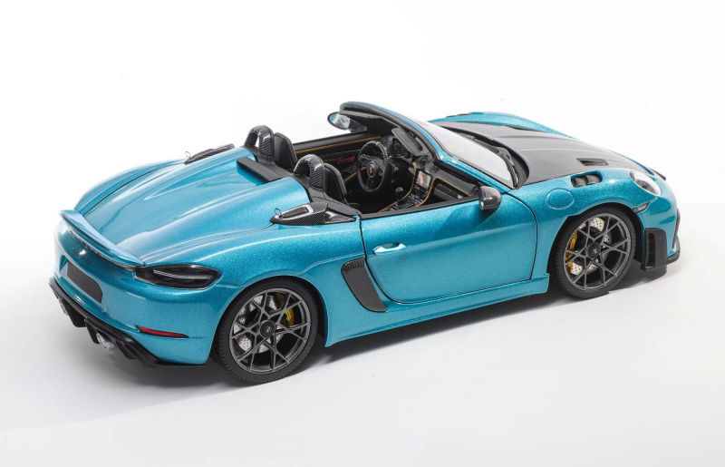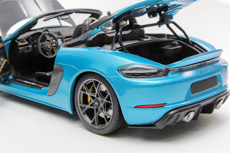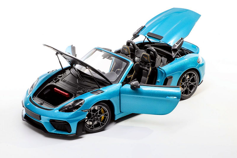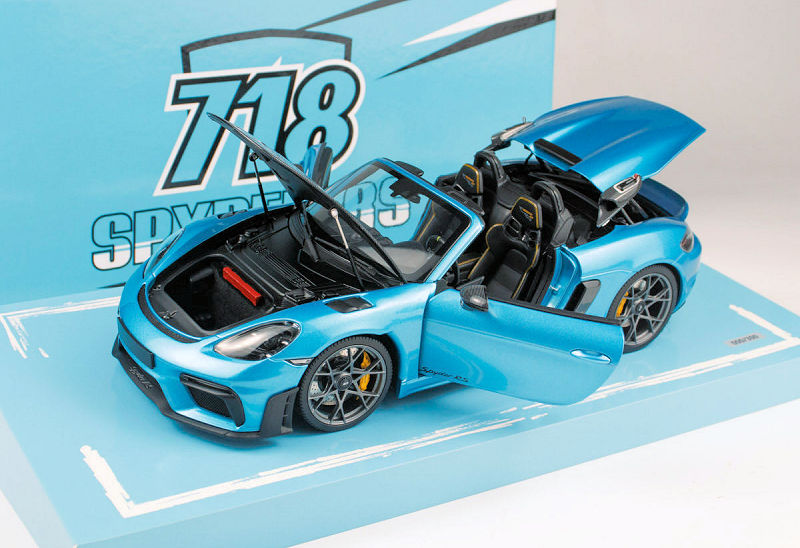Minichamps will offer up its 1:18 diecast metal and opening Porsche Cayman 718 Spyder RS with Weissach Package in Ipanema Blue to the Asain market exclusively. Not sure if the production is limited. Delivery is noted as October 2025.