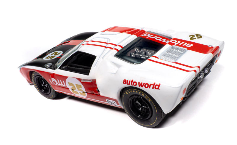Auto World is unveiling this cute 1:64 exclusive 1965 Ford GT40 Mk1.  This model features the all-new Auto World livery.  It is race-inspired and takes life based on team colours that have raced at Le Mans, Daytona, Sebring and more! Please connect with Auto World or dealer for additional information.