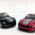 Auto World is bringing forward more options and improved headlight detailing along with two-tone interiors for the Ford Mustang GT 2017. These 1:64 replicas pack a whole lot of bunch. Ruby Red and Gloss Black with Silver stripes are the latest entries into the assortment. Both are due in July.
