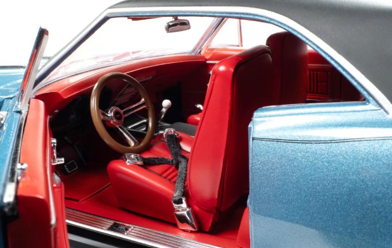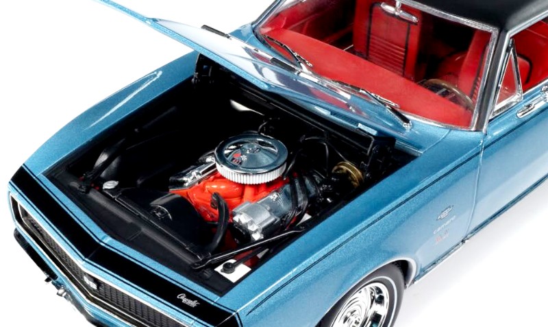 I wish AW would make an SS396 fully equipped with the front air dam, the rear spoiler, RS package, tone on tone exterior and interior! Blue on blue, red on red, but they have a red car already… A black and white car would look great. Maybe some unusual combination like this blue over red but limit the colors a bit, the vinyl roof is a bit much. I know this one is based on a real car…