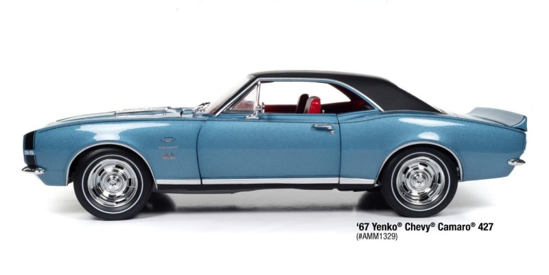 This replica from Auto World features are 1967 Yenko Camaro. The car was featured at the 2019 MCACN show. This Blue and Black exterior is definitely gold with us. Please connect with Auto World for more information and release date.