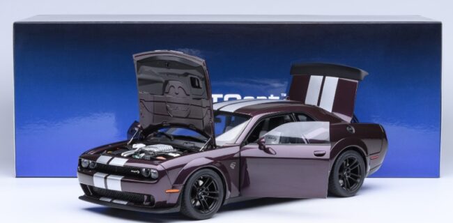 ** UPDATE ** In addition to the Red, AUTOart has just shared images of the 1:18 Dodge Challenger SRT Jailbreak 2022 in Hellraisin with Silver decals. We love it!