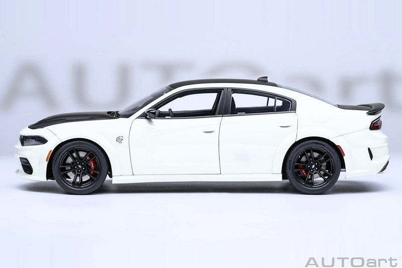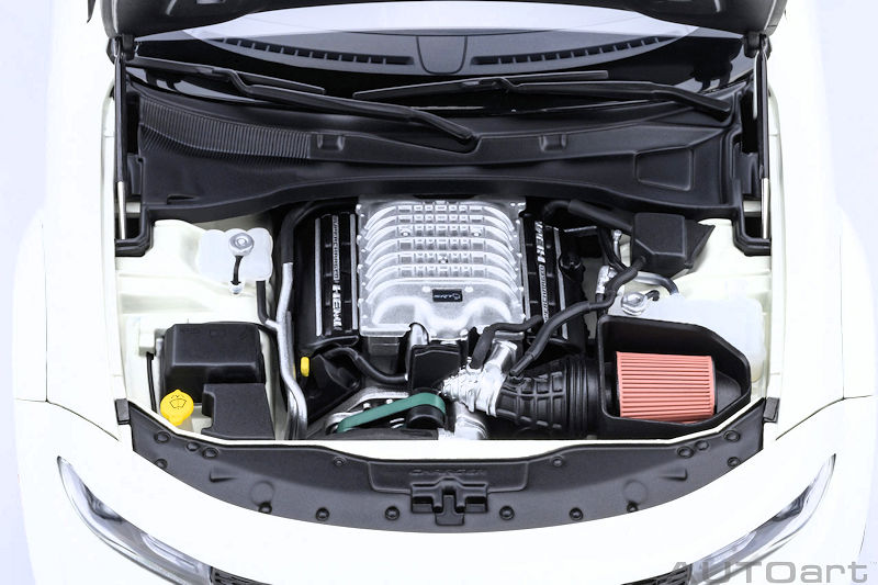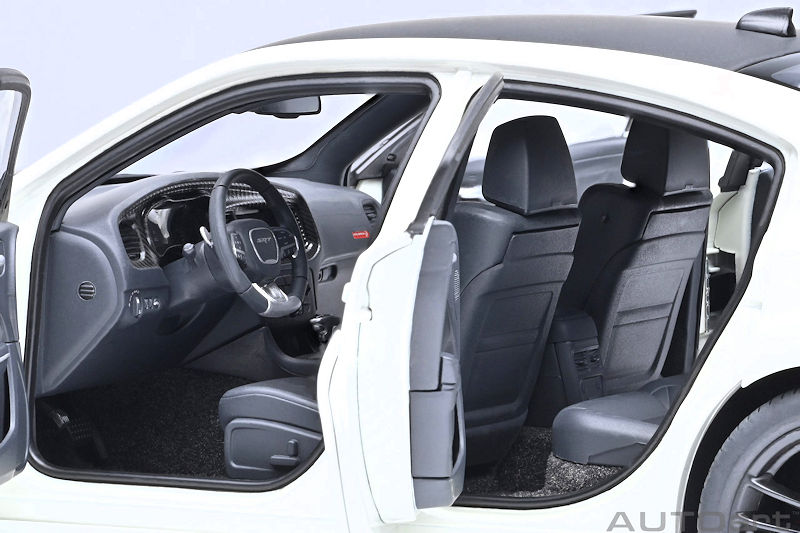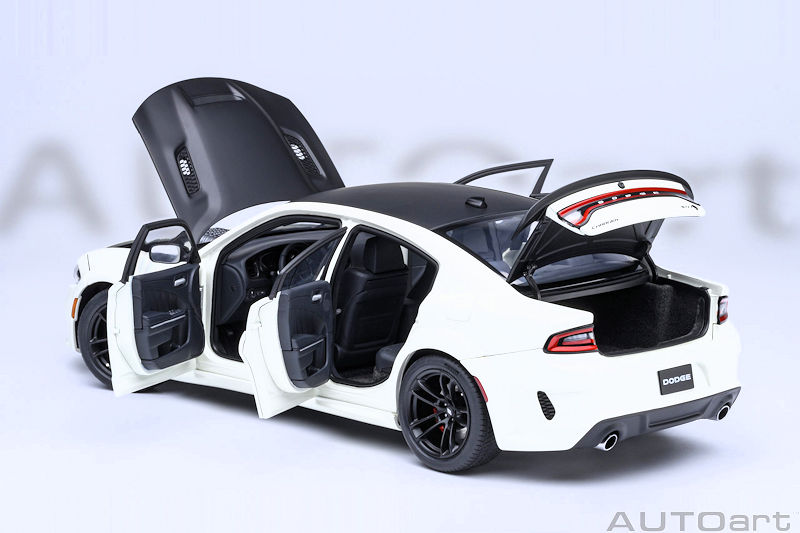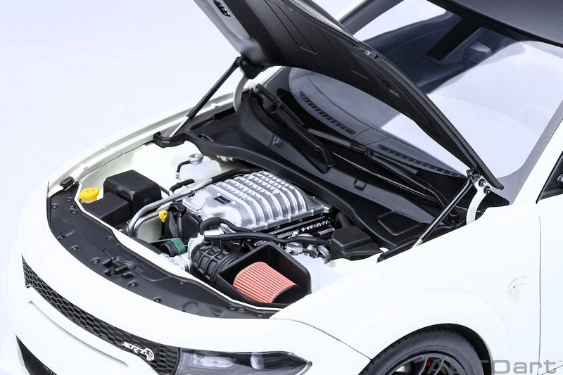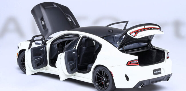 AUTOart provides another colour option for their 1:18 composite and opening Dodge Charger SRT Hellcat Redeye Jailbreak. This example is presented in exterior Knuckle White. This model is due to arrive in May 2026. If you like to see the level of detail expected from this release, please examine the recently uploaded review of the AUTOart Dodge Challenger SRT Jailbreak 2022.