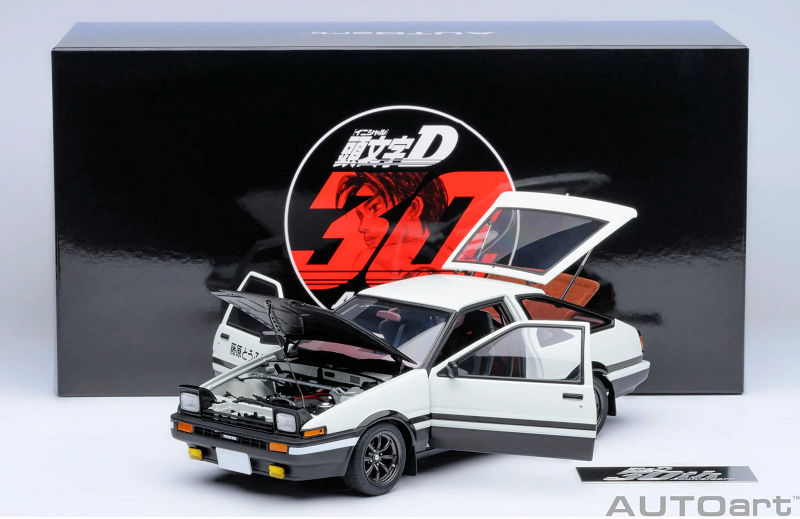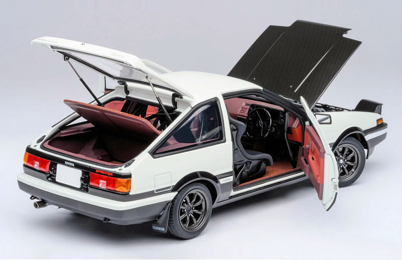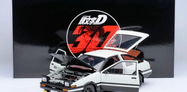 Team AUTOart will action the 1:18 composite and opening Toyota Sprinter Trueno (AE86) “Initial D” “Project D” Final Version. Celebrating 30 years of the popular comic book, AUTOart will introduce this limited production with special packaging and a badge. No official word on the release date has been provided.