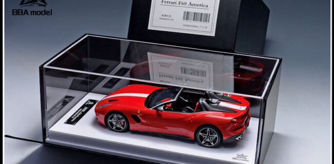 BBA Model is back with the 1:18 resin and sealed Ferrari F60 America. Has this model ever seen the light in 1:18 scale? If interested, colour options are large, they include: Standard Red, Sapphire Blue, Sky Blue, Light Blue, Black, Yellow, Phantasmal White, Electric Pink, Purple, Chameleon and Nightlight Green. Each is limited to 15 units. Delivery is noted as January 2026.
