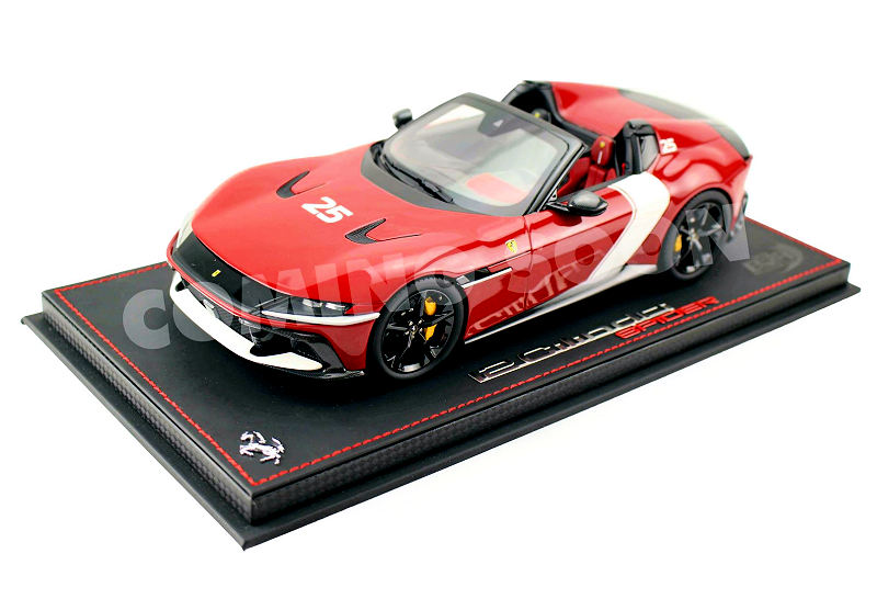 BBR unveils a sample image of their latest effort: the 1:18 resin-and-sealed BBR Ferrari 12Cilindri Spider Rosso Racing 2025 Gloss. The livery is unique and very satisfying. The product is capped at 99 units and has already sold out.