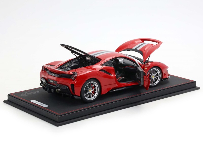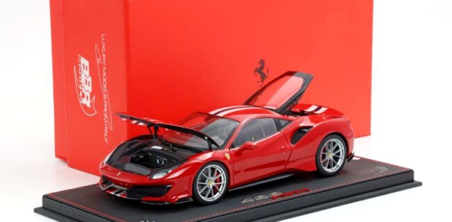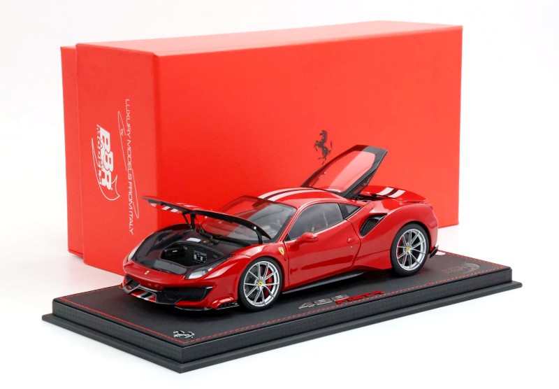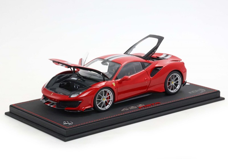 BBR has unveiled production samples of their upcoming 1:18 metal and opening Ferrari 488 Pista. This model will arrive in a number of colours, see the NEWS feed for additional information. Two options the standard basic foam packing and the high-end luxury pack with base and cover. This piece looks promising. On our pre-order list!