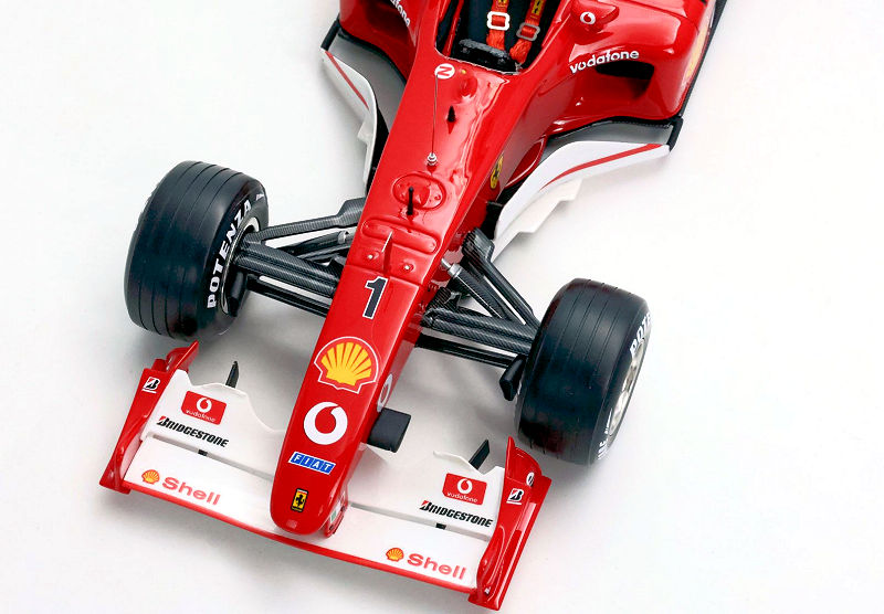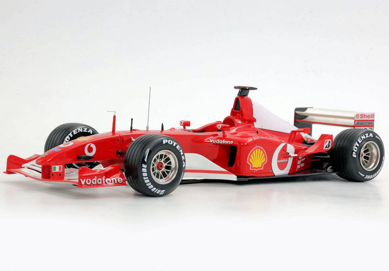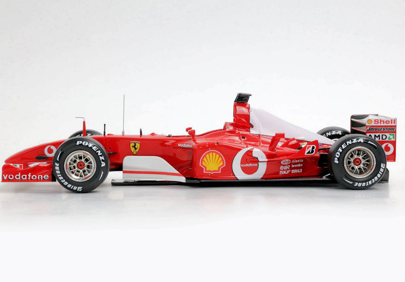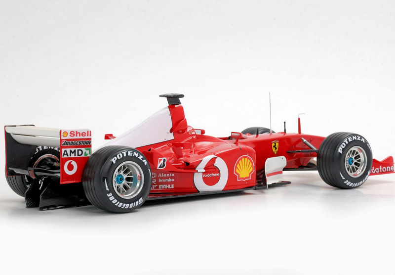 About the Ferrari F2002 GP… “In the 2002 French Grand Prix, held at the Magny-Cours circuit on July 21, Michael Schumacher took victory, mathematically securing his fifth world title with six races to spare. Starting from second on the grid, behind the Williams of Juan Pablo Montoya, the German overtook the Colombian in the early laps and controlled the race until the chequered flag, taking his eighth victory of the season and equalling Juan Manuel Fangio’s record of five world titles.”