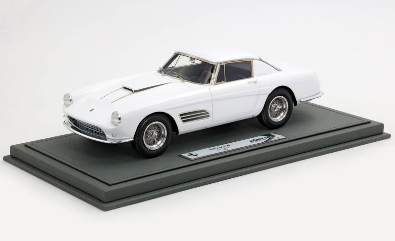 This model hasn’t registered in our database of BBR Ferrari releases. New is the 1:18 resin and sealed Ferrari 410 Serie III. Four different colour options, four different serial numbers. All four are limited production of 108 units each.