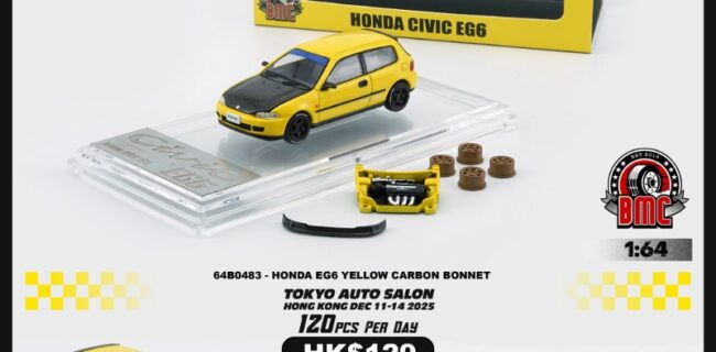 More Tokyo Auto Salon exclusives!  BM Creations will be there with 1:64 Honda EG6  in Yellow with Carbon Bonnet.  This one will set you back $23 CND.