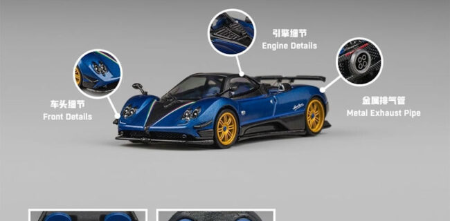 A slew of new material has been announced by CM Model, likely due to the Chinese New Year celebrations. Cars here are all 1:64 scale. Models include the Pagani Licensed Products – Zonda Tricolore Carbon Blue, the Mustang Mk7 S650 Dark Horse & GTD Dark Horse Police Livery Grey Rims / GTD Silver Police Livery Rims, the McLaren Senna GTR Metallic Grey, the Toyota Tundra PickUp MK3 XK70 TRD Pro Gloss Black, the Toyota Supra Mk5 A90 Pearl White, and the Subaru/VarisBRZ Mk2 ZD8, Arising-1 Modified Metallic Blue. Delivery is May/June 2026.