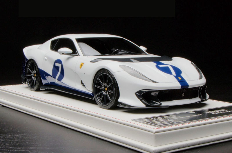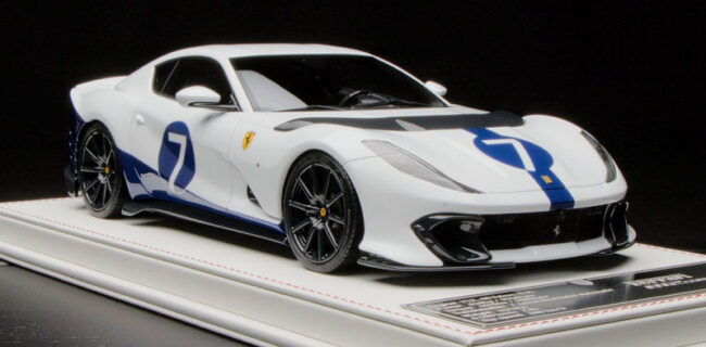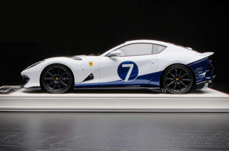 More from Davis & Giovanni, welcome the 1:18 resin and sealed Ferrari 812 Competizione. This example features a Blue and White colour theme with #7 decal set. We’re not sure of the significance of the livery. Sorry!
