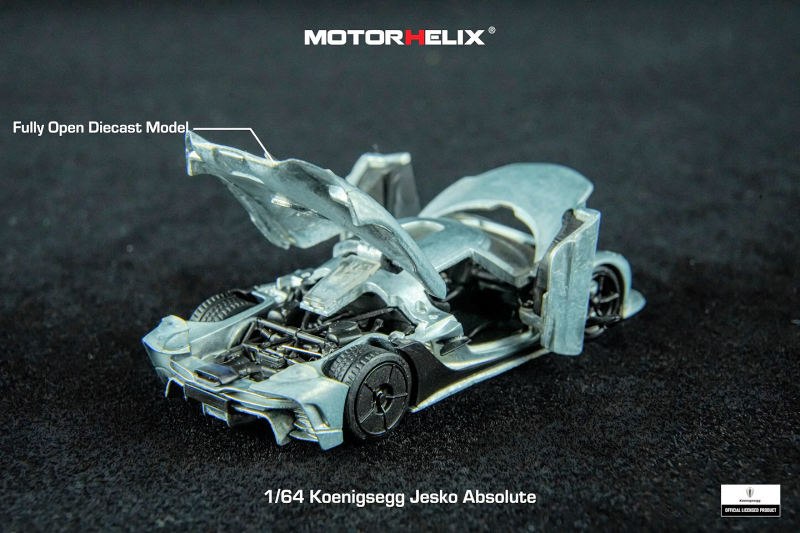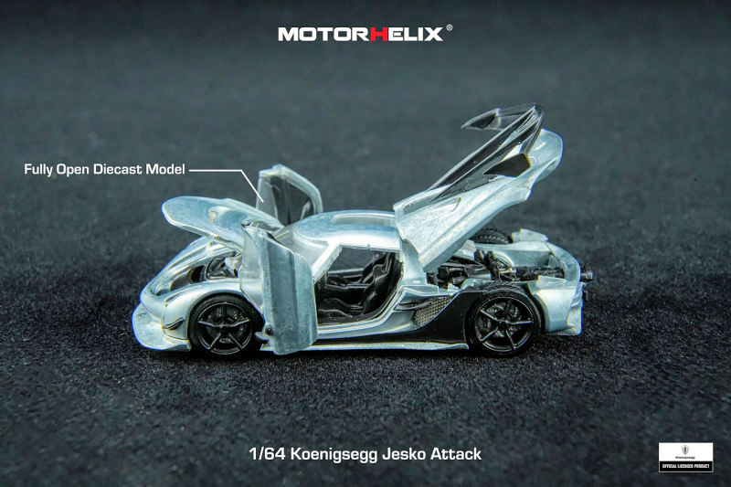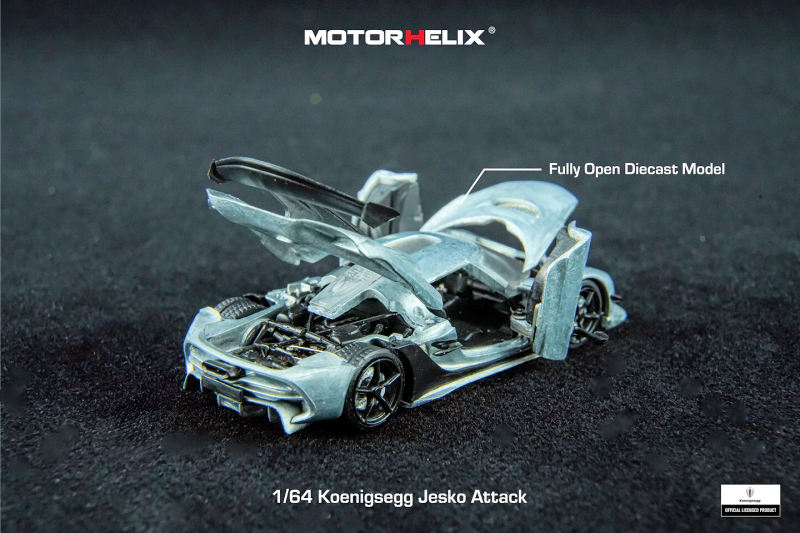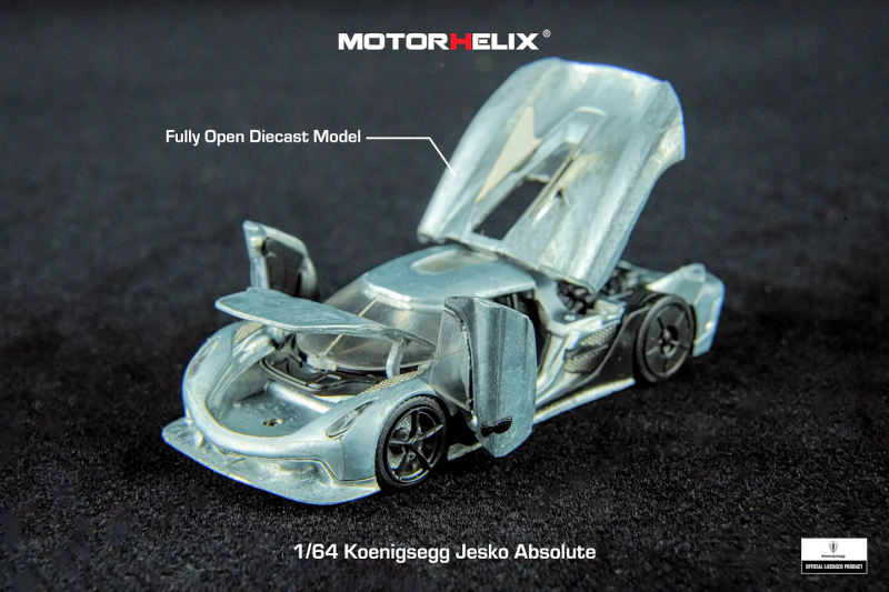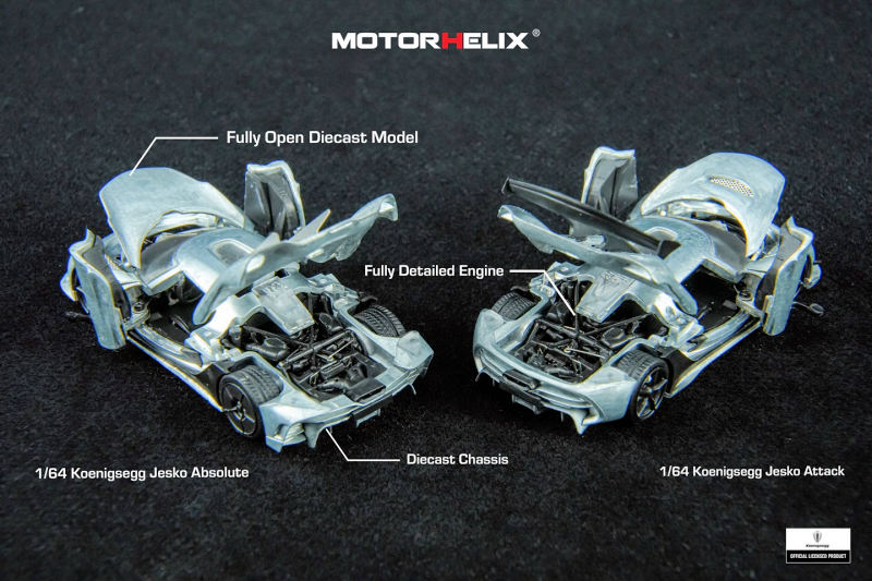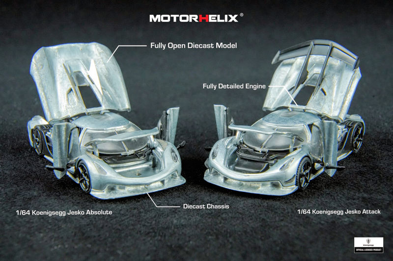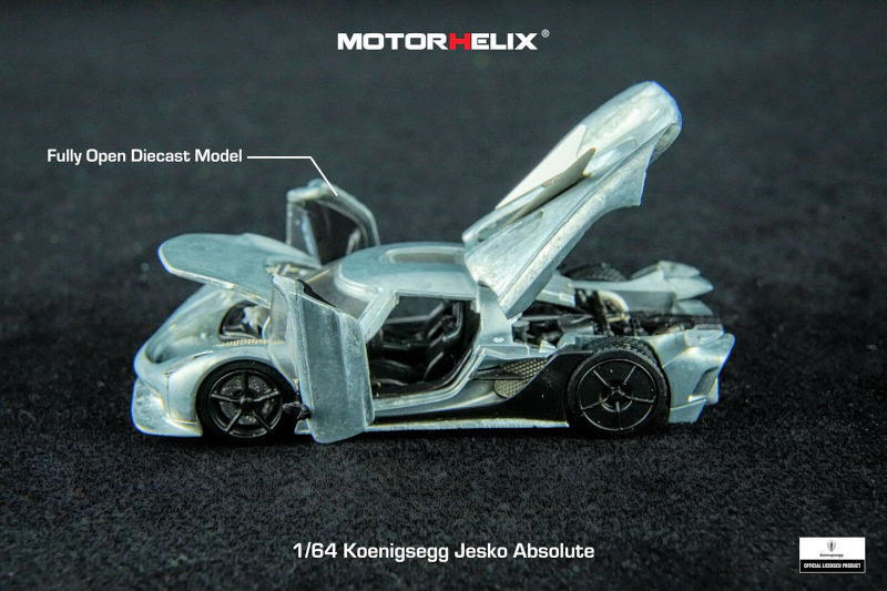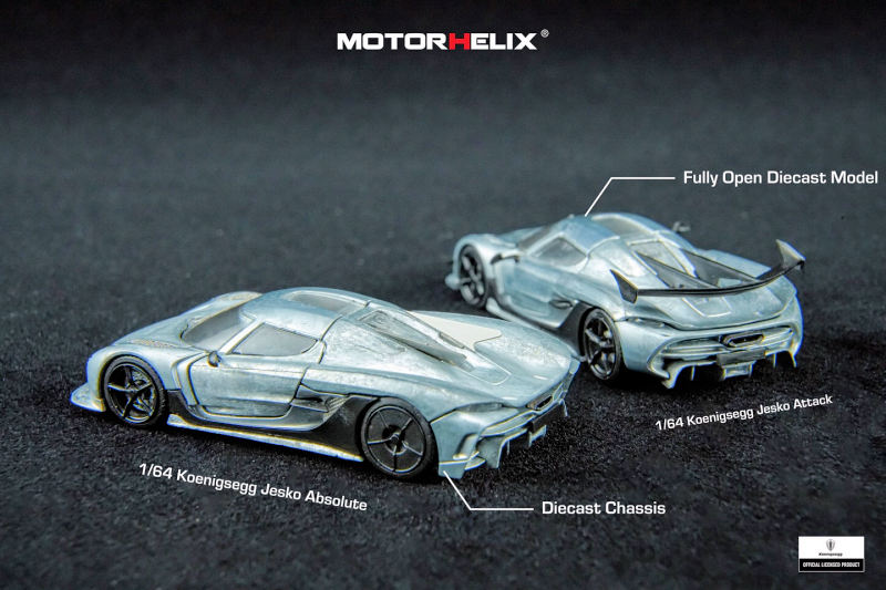 MotorHelix is expanding on its Koenigsegg assortment with two diecast metal and fully-opening models. This includes the 1:64 Jesko Absolute and 1:64 Attack. As the photos will show, MotorHelix is coming to play in the premier 1:64 scale space. More coming soon!