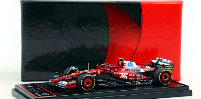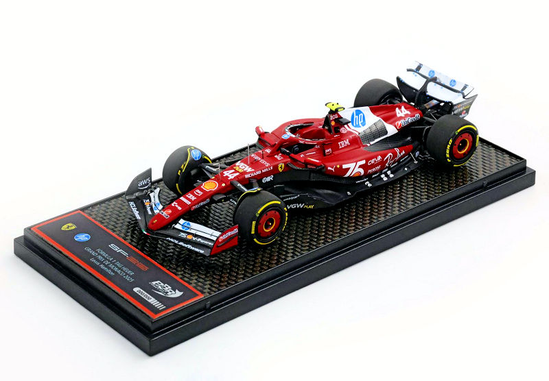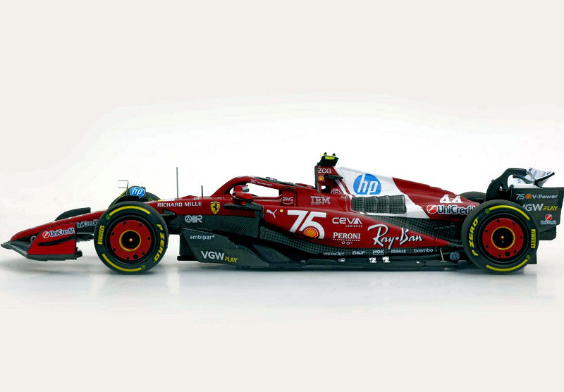 BBR has unveiled the first photos of a painted sample 1:43 scale Ferrari SF25 Monaco. This model features the livery for 75 years with Shell, Lewis Hamilton’s car. Please connect with BBR or retailer for more information. Production is capped at 99 units.