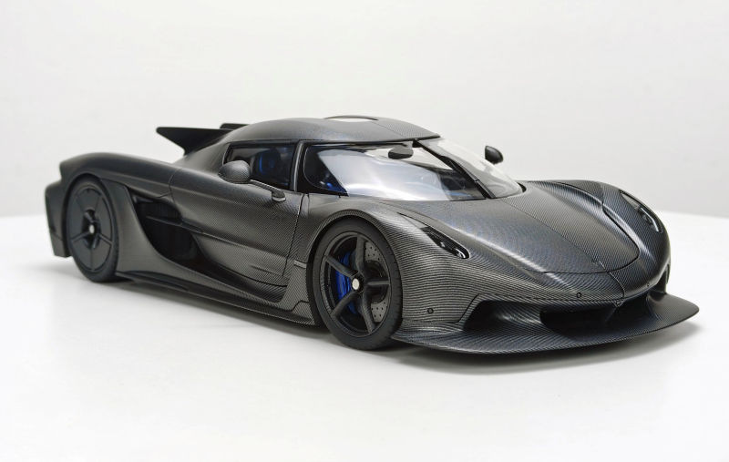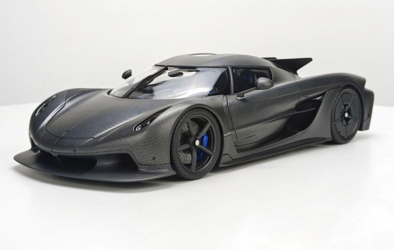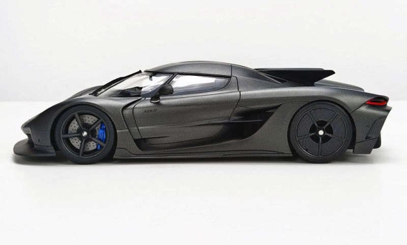 Adding to the Fronti-Art sealed and resin assortment if the 1:18 Koenigsegg Jesko Absolut. This example features a Naked Carbon exterior with Blue brake callipers, which follow suit into the interior side. Production is capped at 100 with delivery in early February 2026.
