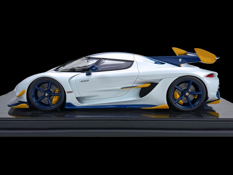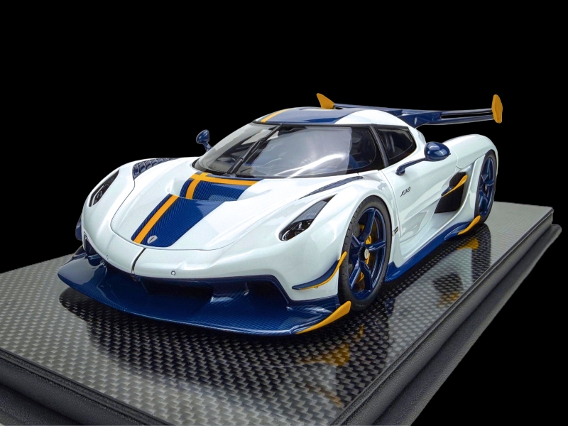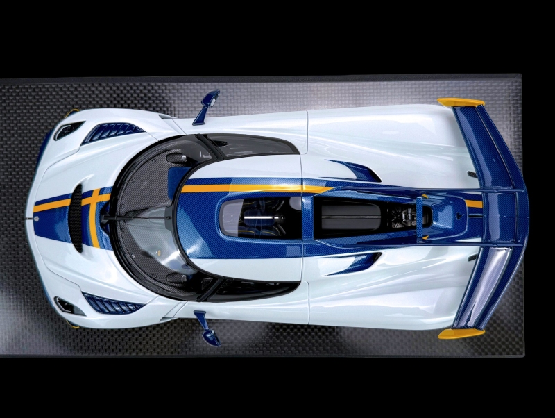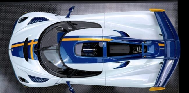We love this look for the latest batch of Fronti-Art 1:18 Koenigsegg Jesko. This example is presented in Crystal White with hints of Blue and Gold. This transcends to the interior side as well. Production is capped at 100 pieces with delivery scheduled for July 2026