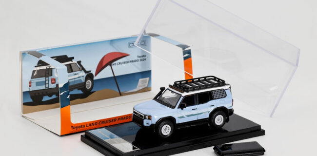 More GCD releases of the Toyota theme.  Two pickups in 1:64 scale include the Toyota Prado LC250 Indigo exterior and the Toyota LCD Black(638).  Production is capped at 500/400 units, respectively.  Delivery later April/May 2026.