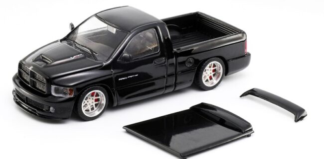 GCD with SHOOM have executed the 1:64 scale Dodge RAM SRT-10. Two colour options will be available, this includes Black and White with Blue stripe decals. Delivery is scheduled for December 2025. Love these guys!