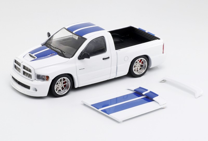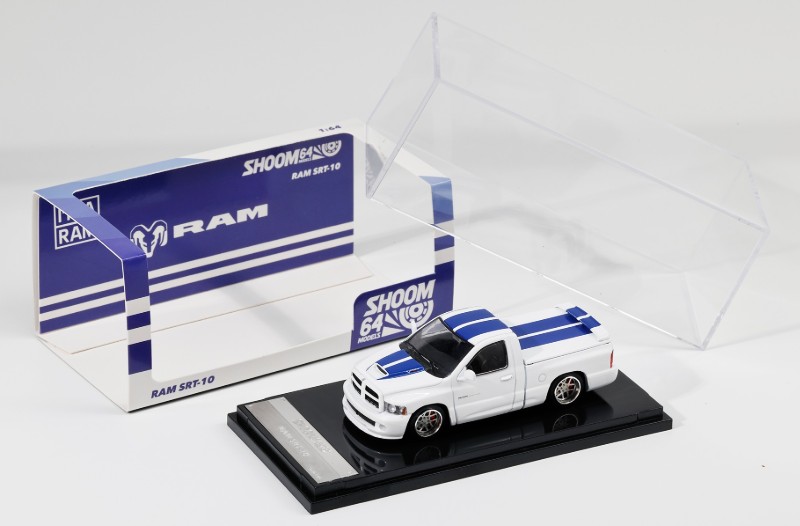 GCD with SHOOM have executed the 1:64 scale Dodge RAM SRT-10. Two colour options will be available, this includes Black and White with Blue stripe decals. Delivery is scheduled for December 2025. Love these guys!