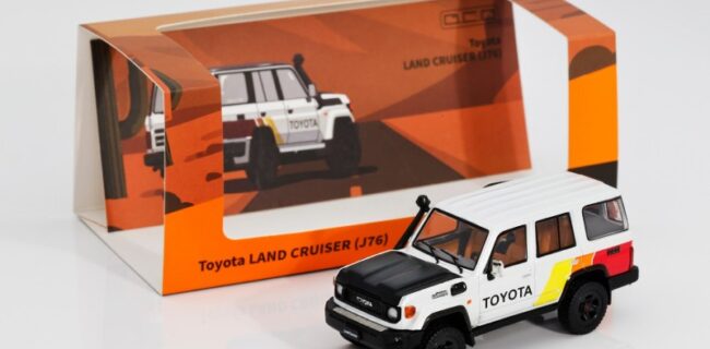 Another 1:64 example comes from GCD.  The team is putting a spin on their GCD Toyota Land Cruiser (J76) mould.  This is the White version with livery – decals in the box!  Delivery is noted as December with production capped at 600 units.