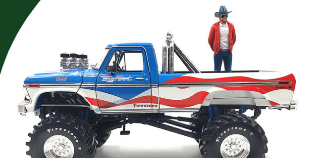 GreenLight Collectibles is dusting off its Bigfoot mould once again.  Coming in June 2026 is the 1:18, metal and opening Bigfoot #1 – 1979 Ford F-250 Monster Truck USA 250 Tribute.  This tribute ships with a Bob Chandler standing figure.  The suggested retail price is $134.99 US.