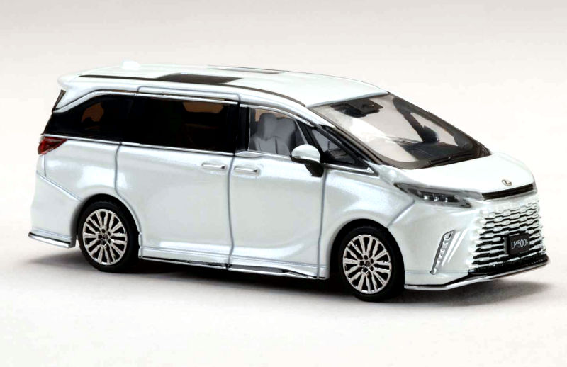 Hobby Japan is back with their new 1:64 metal and sealed Lexus LM 500h Customized Version. Four colour options include: Sonic Quartz, Graphite Black Glass Flake, Sonic Titanium and Sonic Agate. All will wear the White interior side.