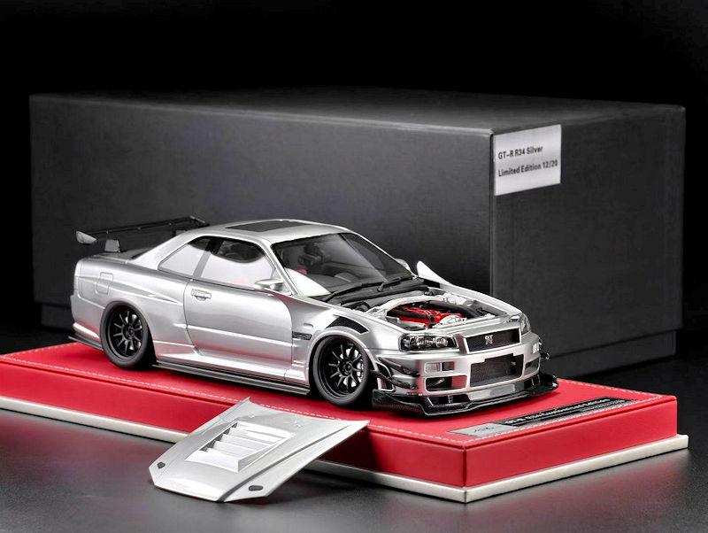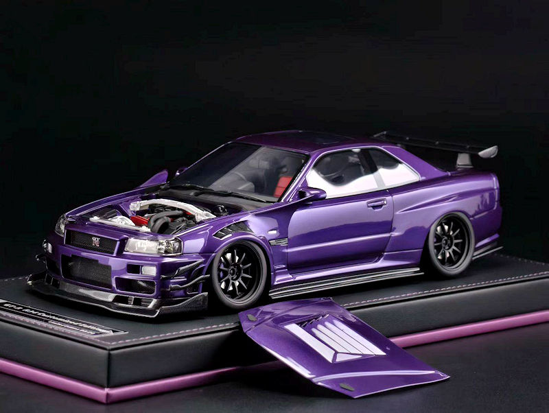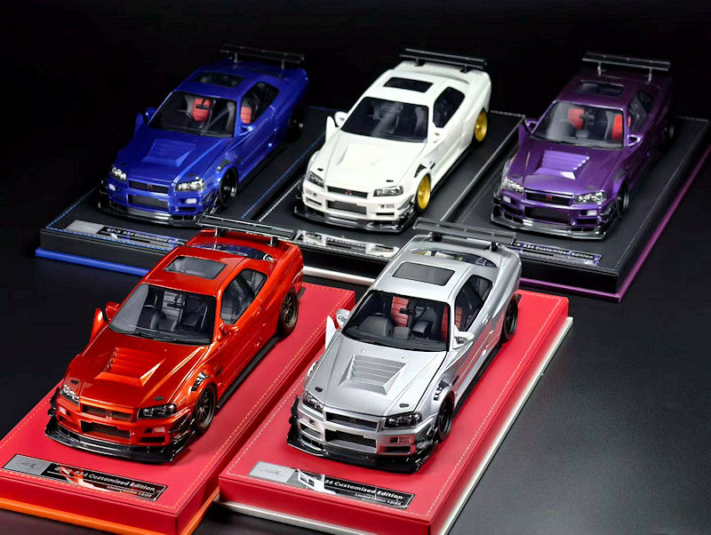 This example came across our plate. The new 1:18 resin and sealed Nissan R34 GT-R. We don’t think the end results are all that great. What do you think? Colour options are Silver, Green, White and Purple.