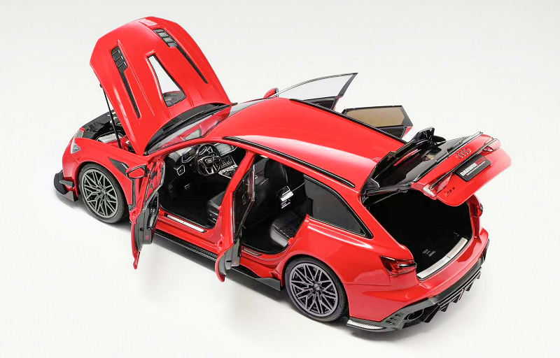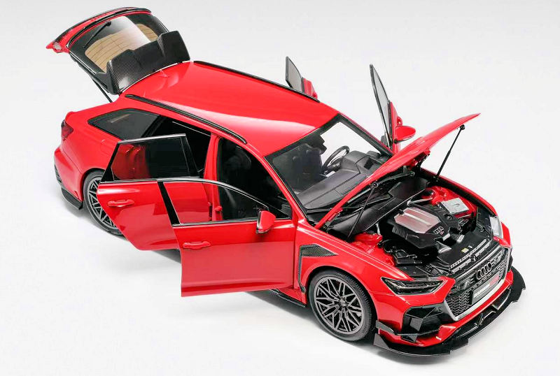 KiloWorks is back with another exterior/wheel option for their 1:18 diecast metal and opening DarwinPRO Audi RS6. This example is defined as Red DPR Wheel Hub Version. Production is capped at 199 units and should be on shelves later next month! One will set you back about $279 CND.