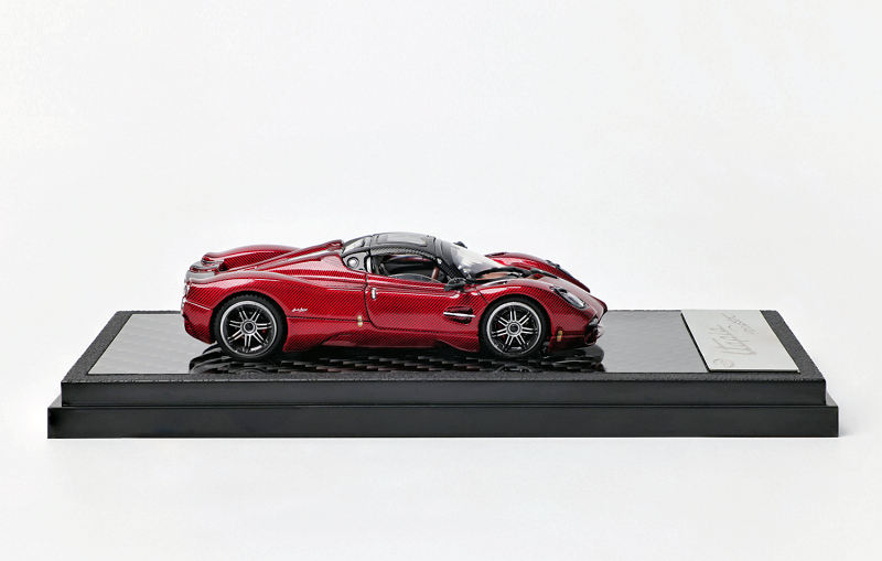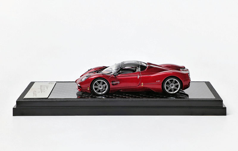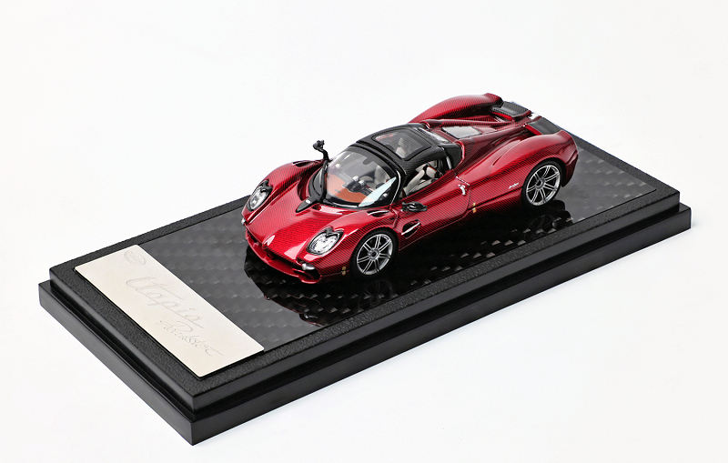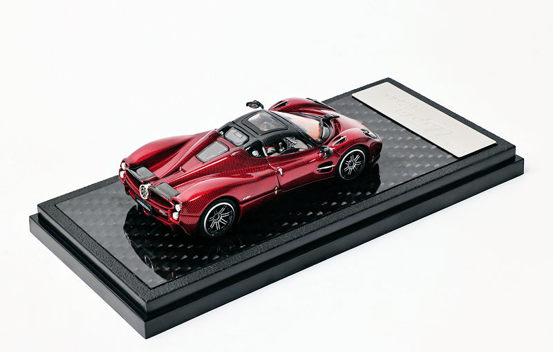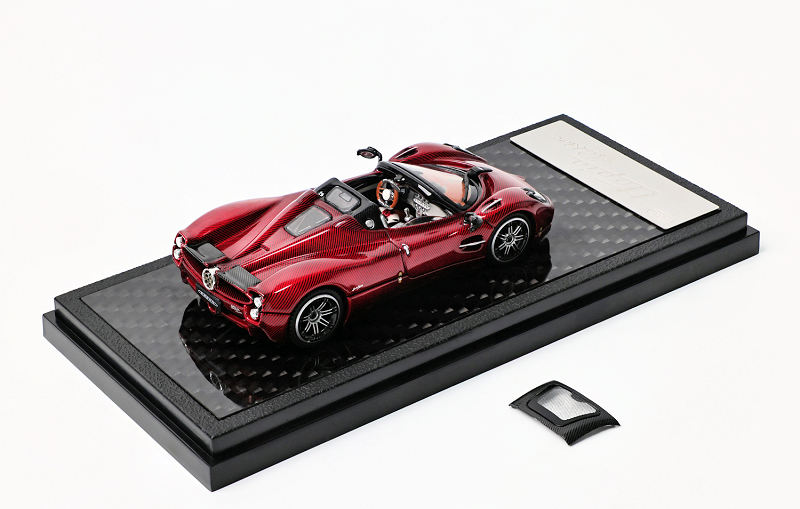 A new skin for the 1:64 LCD Models Pagani Utopia Roadster. This one is shown in Red Carbon. This example comes equipped with a removable roof. Delivery is noted as Q2 2026.