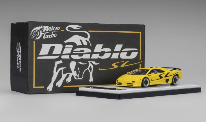 Micro Turbo has unveiled the their 1:64 scale Lamborghini Diablo SV. This example comes Metallic Yellow exterior. Production here is capped at 999 units. Delivery is noted as late December 2025.