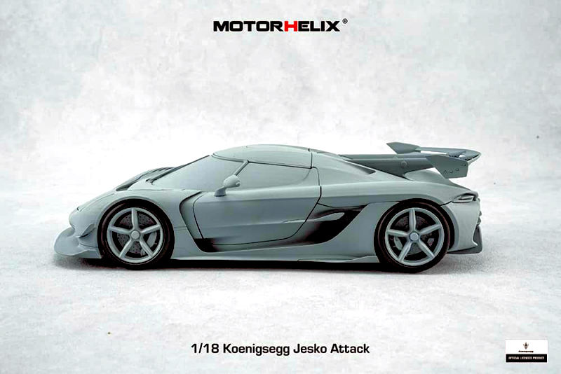 I welcome Motorhelix making what has the greatest potential to become the best model of the Koenigsegg Jesko. Yes, we have been flooded with models of it, all of them sealed resin, and have been kept waiting, for opening plastic. High time for a manufacturer to master the double-helix-doors and detail of a Koenigsegg in diecast metal.