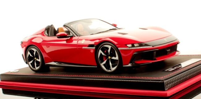 MR Collection has unveiled the 1:18 resin and sealed Ferrari 12cilindri Spider. This example is shown in Rosso Corsa exterior. Inside the Black and Tan interior add a layer of luxury. Please connect with MR for more on availability.