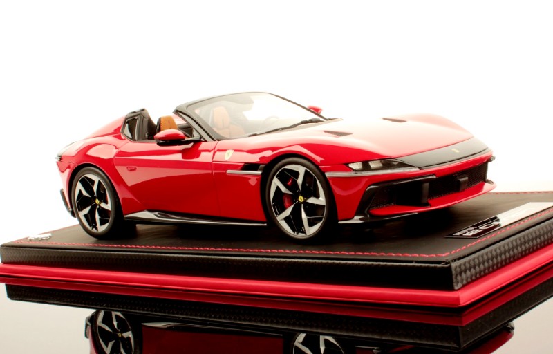 MR Collection has unveiled the 1:18 resin and sealed Ferrari 12cilindri Spider. This example is shown in Rosso Corsa exterior. Inside the Black and Tan interior add a layer of luxury. Please connect with MR for more on availability.