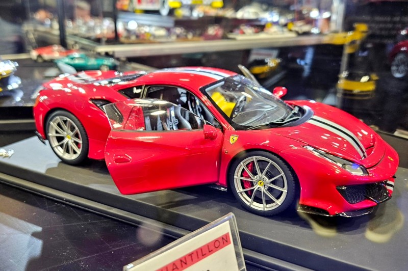 This is exciting news for enthusiasts of Ferrari, diecast metal, and full-opening models. It appears that MR Collection has been experimenting in this space, and the results are beginning to surface. A fully painted production sample of the Ferrari 488 Pista is currently being showcased in Europe, and from the single image released so far, the outcome looks very promising. Interestingly, isn’t BBR pursuing a similar approach?