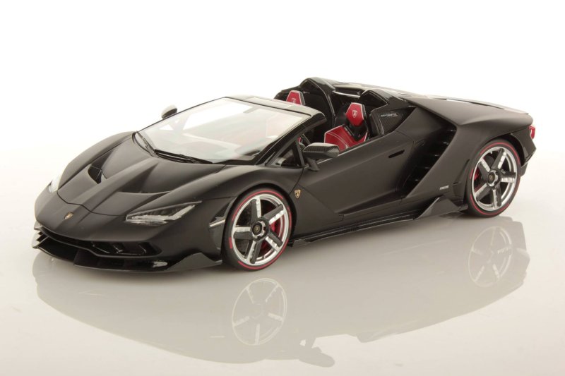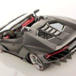 MR Collection releases the latest colour for their 1:18 Lamborghini Centenario Roadster, Nero Nemesis is the latest colour to be added to the assortment. The exterior also features Red pin striping around the wheels. Interior iis found in two-tone, Black and Red. Model is available for immediate delivery.