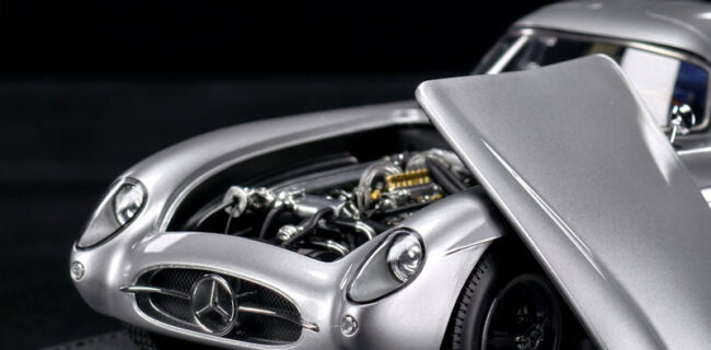 V8 Model is a new brand to DiecastSociety.com, not sure if it is metal and semi-opening or resin, if we were to bet, it would be the latter. Two models here to share include the Mercedes-Benz 300 SLR. Two versions to choose from: Silver with Red interior or Silver with Blue interior. Production is capped at 88 and 55 pieces.