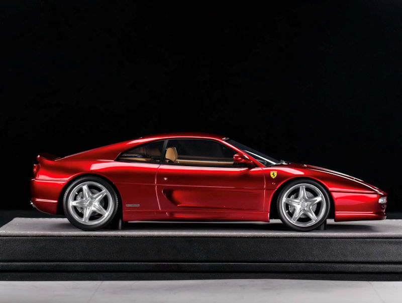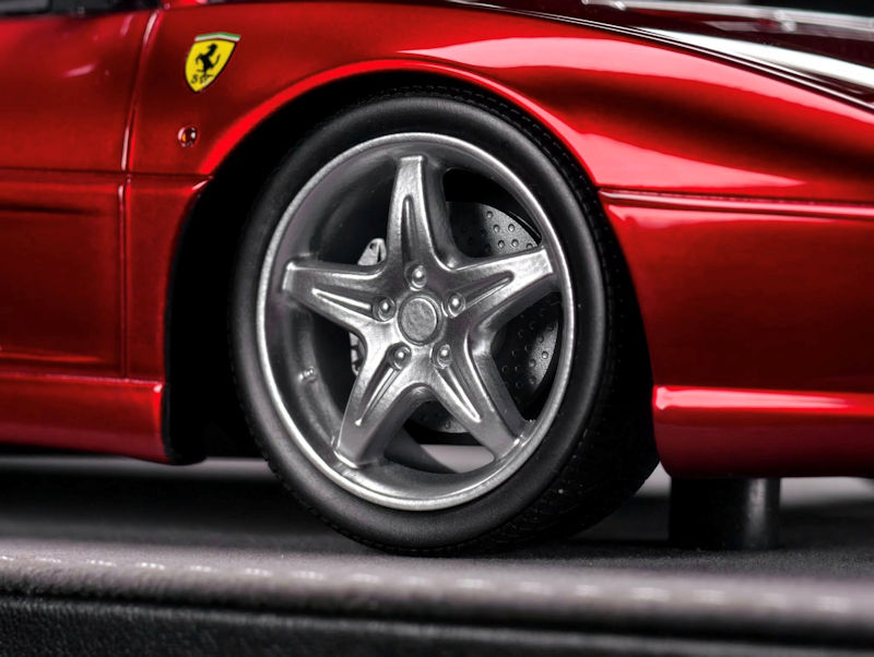 V8 Model is also presenting the 1:18 Ferrari F355, a model produced from 1994-1999. Colour options exceed that of the Mercedes; they include: Standard Red, Standard Red/Black Spoiler, Transparent Red, Transparent Red/Black Spoiler, Yellow, Yellow/Black Spoiler, Luminous White, Luminous White/Black Spoiler and Metallic Black.