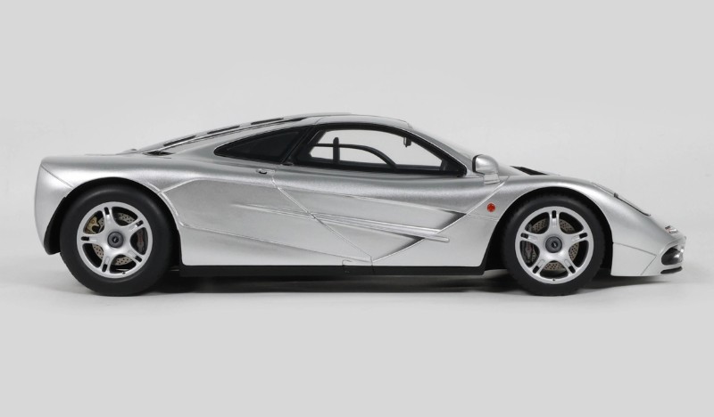 GT Spirit will offer the 1:18 resin and sealed version of the McLaren F1.  This Silver exterior will be exclusive to the Asian market.  We love GTS and their roll in the hobby, however, this cars deserves more, a full-open example. There are options available; search the news for them!