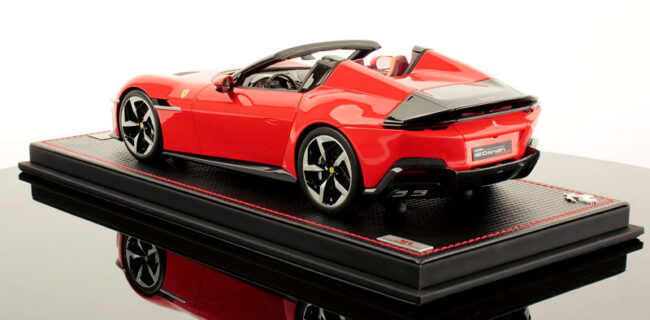 MR Collection and Looksmart have released new samples. This is the 1:18 resin and sealed MR Ferrari 12cilindri completed in Rosso Dino. A limited production of 49 pieces. Looksmart displays its version of the 1:43 Bugatti Divo in Jaune Saufre Gloss. Both are available for immediate delivery.