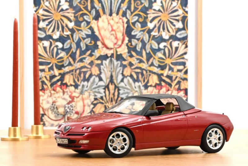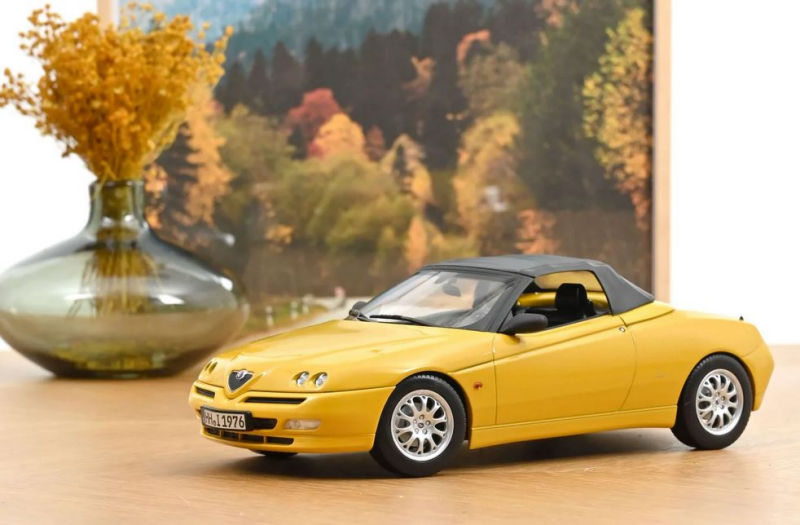 Norev is back with a few October releases, all feature the Alfa Romeo branding, all three in 1:18 scale. Cars in the online exclusive Alfa Romeo Spider 1999 in Zoe Yellow – a limited edition of 150 units. Hobby editions include the Alfa Romeo Spider 1999 in Proto Red and the Alfa Romeo GTV 2001 in Coventry Green.