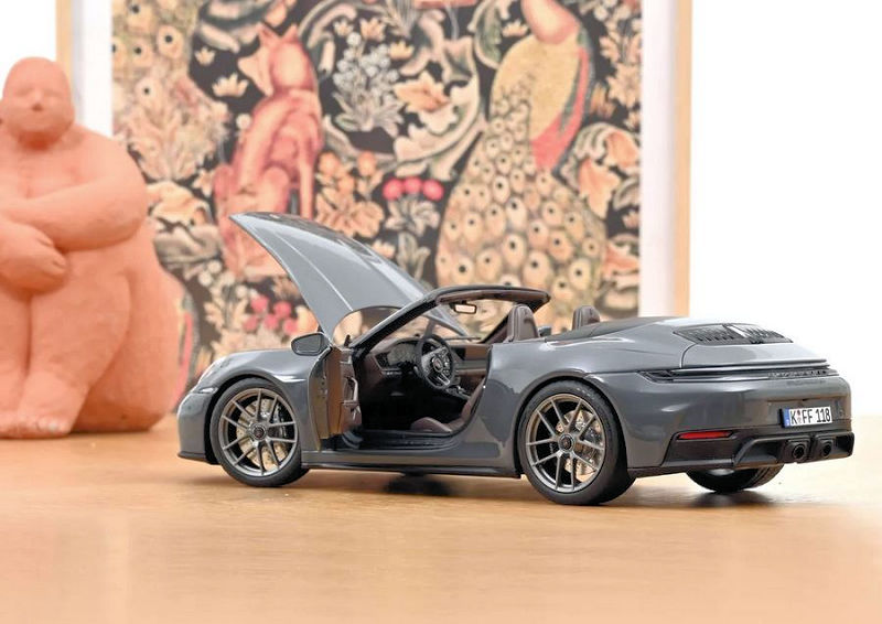 Norev presents a couple of online-exclusive Porsches. We have the 1:18 metal and opening Porsche 911 Carrera 2025 Vert Irlandais and Porsche 911 Carrera Cabriolet 2025 Slate Grey Neo. Production here is capped at 200 units worldwide for each. Connect with Norev for more information.