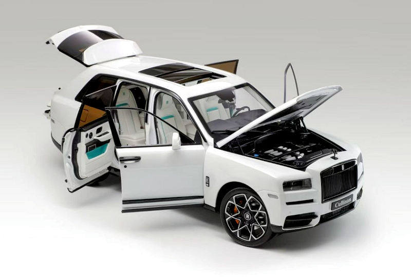 Another option for the wonderbar 1:18 diecast metal and fully opening Rolls-Royce Cullinan BB Fishing Seat Version. This example is presented in Metallic White with the Kahn wheel option. Production here is limited to a low of 149 pieces. This model will go on sale soon!