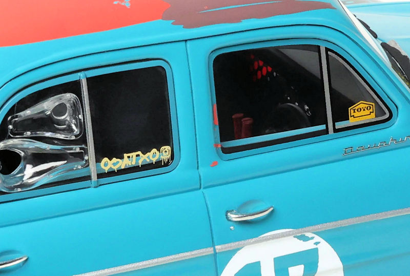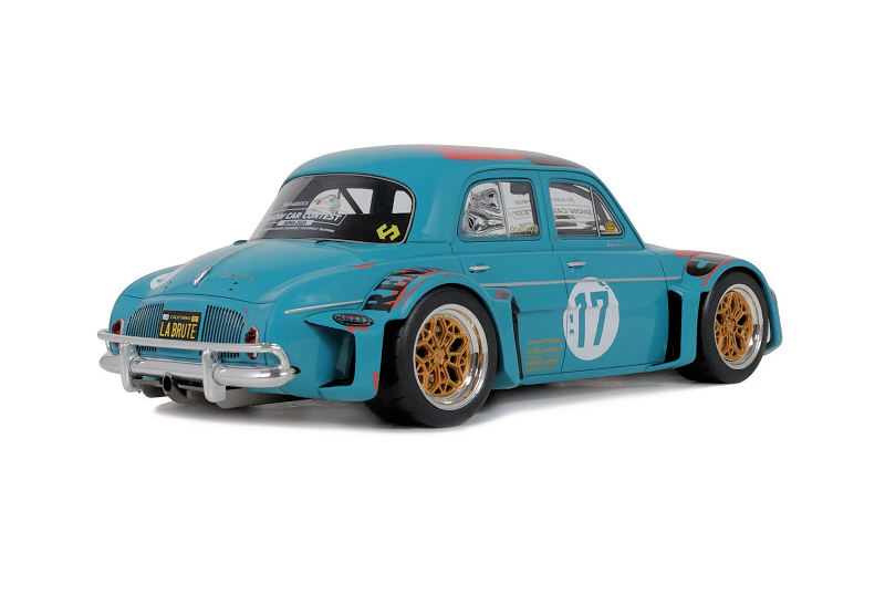 About the Dauphine La Brute… “In the 1950s, Renault launched the 4CV and then the Dauphine in the United States. The second immediately won over the American press and public. But numerous reliability issues weighed down its sales, and its distribution was discontinued in 1966. More than half a century later, Justin, a Navy veteran, stumbled upon an abandoned Dauphine in the California desert. He bought it for the price of a good meal at a diner and embarked on a unique restoration project. The basic look is preserved, but the little French sedan receives numerous custom touches: a wide-body kit, fender flares, a roll cage, golden wheels, massive tires, and much more. For several years now, Justin’s creation has been drawing crowds from all corners of the United States. This Dauphine is one of a kind and stands out, right down to its “rusty” paint job—a hallmark of American custom projects.”