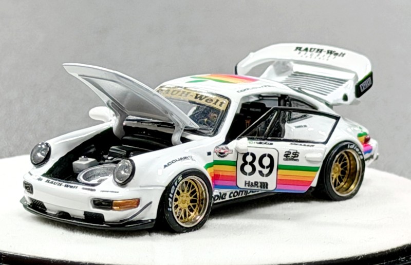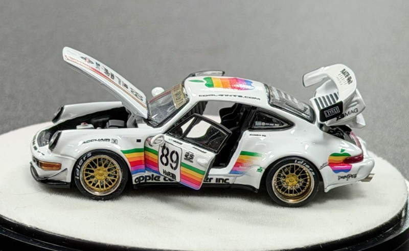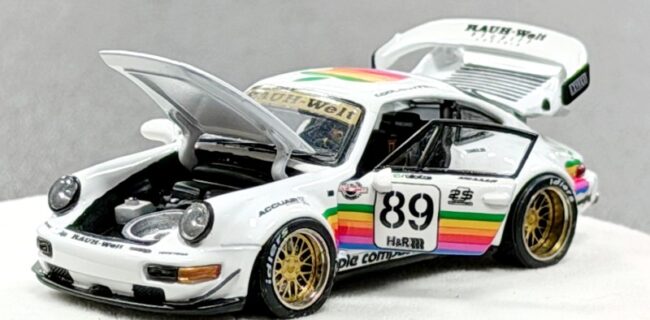 PGM Model is back with the 1:64 metal and opening RWB 964 in White Apple livery. Two versions will be made available, model alone, and luxury version with rotating base. Replicas are limited to 999 and 1500 units respectively. Delivery is noted as January 2026.
