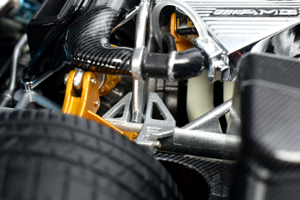 The Blue Carbon exterior is a masterclass in subtlety—rendered with a depth and hue reminiscent of a perfectly aged pair of favourite blue jeans. True to the brand, the “under-the-skin” detailing is where the model earns its keep. The sheer layering of individual components, particularly within the engine bay and suspension assembly, goes a long way toward justifying its $500 CAD price tag.