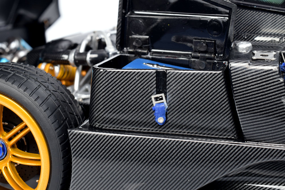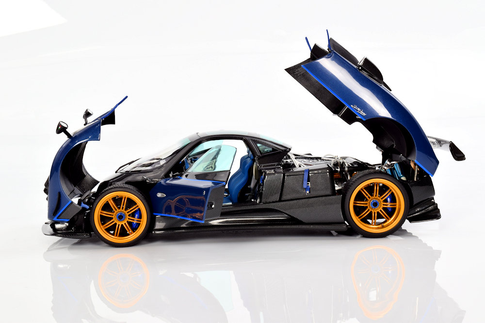 As for the model itself, the execution is nothing short of exceptional. As noted in previous reviews of the Pagani Huayra Dinastia Yazi and the Zonda Cinque Roadster, Almost Real has mastered the art of replicating Pagani’s complex DNA in scale. The level of detail is often puzzling in its intricacy; when every panel is opened, the model transforms into a mechanical “butterfly,” a sight that is incredible to behold.